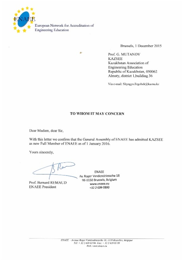 Аккредитационный Центр KazSEE признанный партнер ЕС в рамках проектов по инженерному образованию и аккредитации который имеет партнерские отношения с ENAEE.