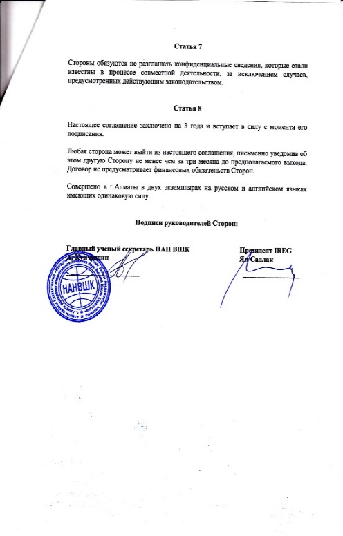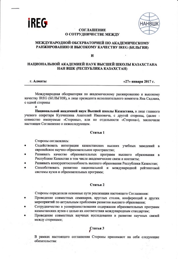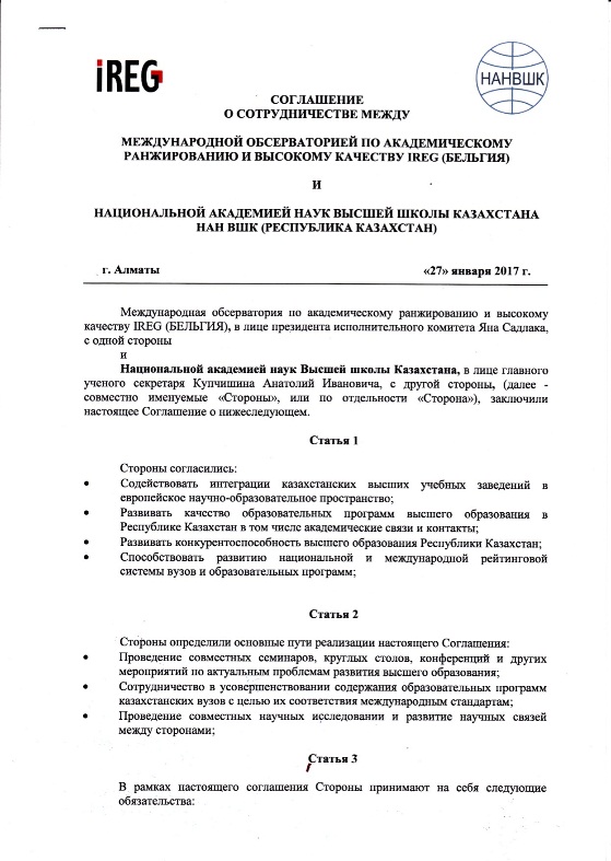 Подписан договор с Президентом IREG Observatory on Academic Ranking and Excellence (IREG Observatory) Jan Sadlak.